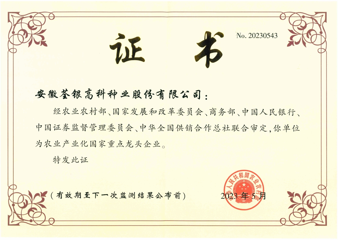 安徽荃銀高科種業(yè)股份有限公司是一家“以種業(yè)為核心、農(nóng)業(yè)服務(wù)為延伸、探索和創(chuàng)新農(nóng)業(yè)多元化發(fā)展”的現(xiàn)代高科技種業(yè)上市公司,證券代碼:300087。公司注冊(cè)資金9.47億元,系“中國種業(yè)領(lǐng)軍企業(yè)、農(nóng)業(yè)產(chǎn)業(yè)化國家重點(diǎn)龍頭企業(yè)、國家高新技術(shù)企業(yè)、農(nóng)業(yè)部首批農(nóng)作物種子育繁推一體化企業(yè)、中國種業(yè)信用明星企業(yè)"。在國內(nèi)控股子公司20多家,在國外設(shè)立分支機(jī)構(gòu)4家,良種銷售至全國20多個(gè)?。ㄊ?、區(qū)),出口覆蓋20多個(gè)國家與地區(qū),種業(yè)綜合實(shí)力、雜交水稻研發(fā)、推廣及海外業(yè)務(wù)規(guī)模均居全國種子企業(yè)前2位。